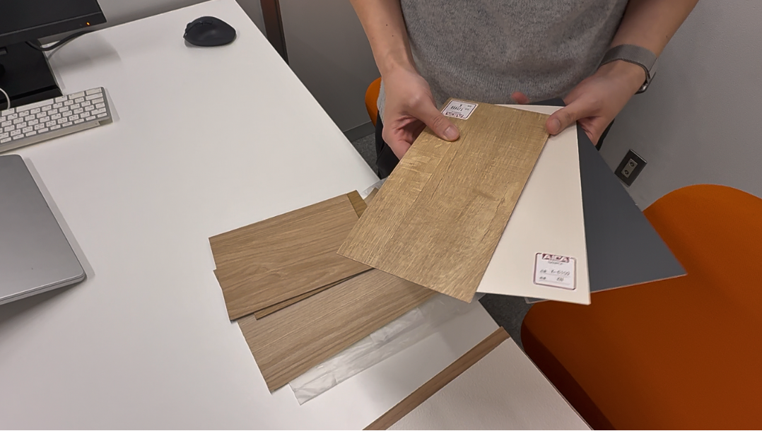 画像生成AIを使って、壁紙を張り替えたらどうなるかをビジュアル化する。デザインを提案する時に、AIと一緒にコンセプトを練っていく。