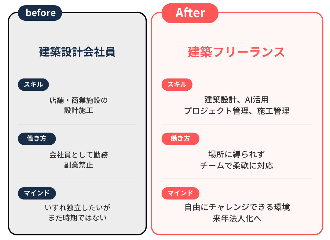 独立2年目の今、月収60万円を達成し、AI技術を建築設計に融合させながら事業を拡大しています。