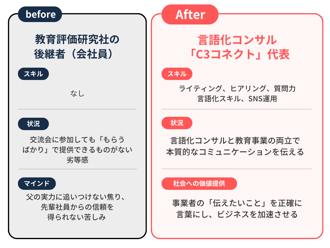 父の会社を引き継ぐプレッシャー、交流会での劣等感、そして看護師からの痛烈な一言。何度も挫折を繰り返した長原佑輔さんが、スキルプラスで学び、言語化コンサル「C3コネクト」の代表として活躍するまでの軌跡をインタビューしてみました。